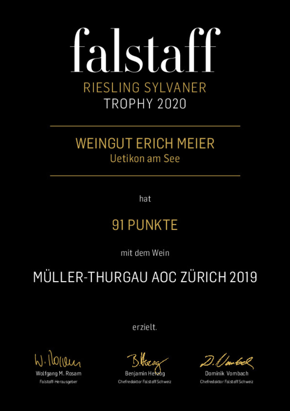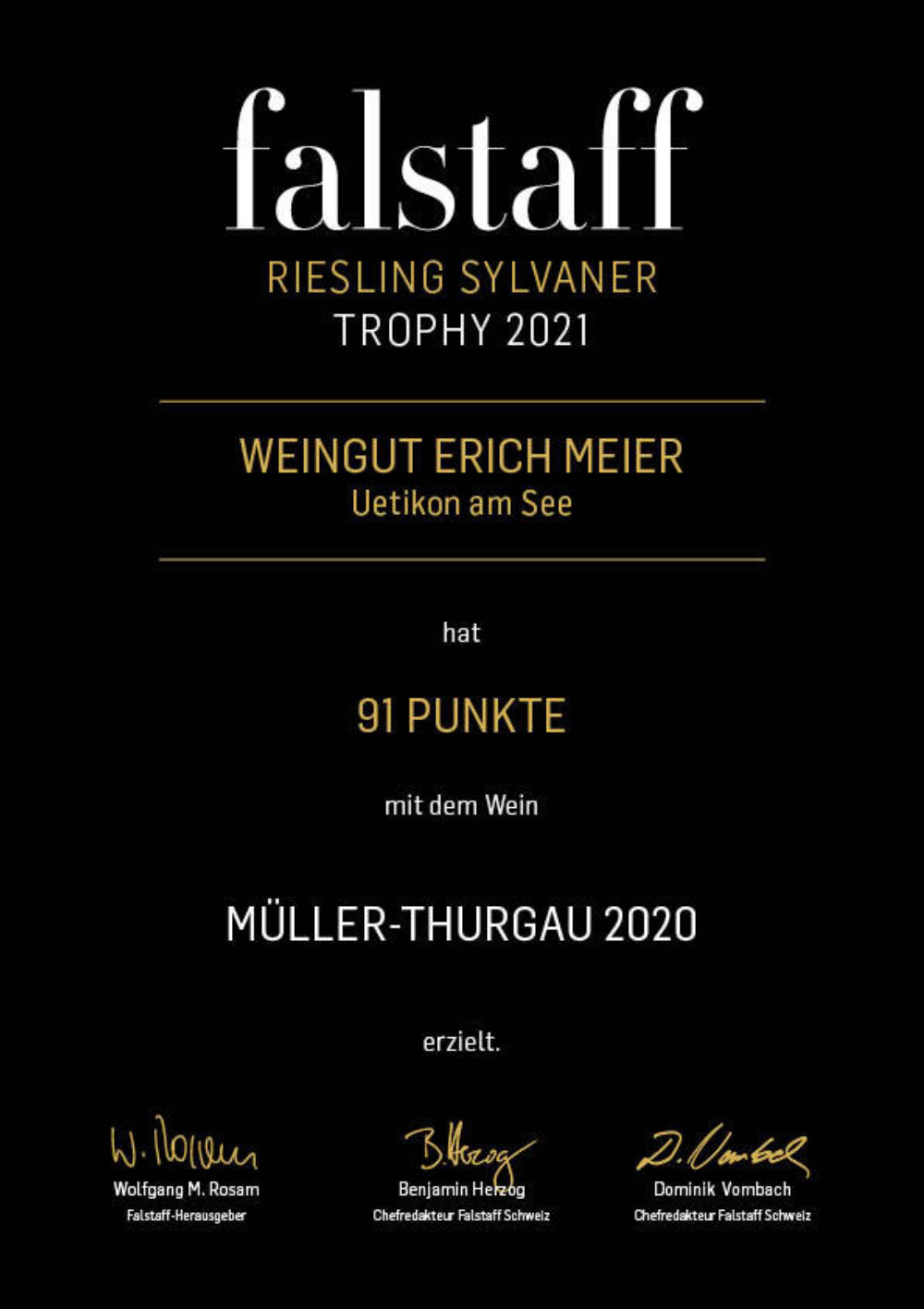 Das Fachmagazin Falstaff hat sich auf die Suche nach herausragenden Riesling Sylvaner Gewächsen in der Schweiz gemacht. Wir freuen uns über 91 Punkte für unseren Müller-Thurgau 2019!