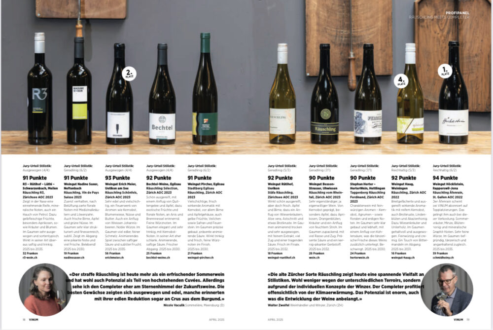 Räuschling und Completer galten lange als borstige «Säuerlinge». Beide Sorten wären beinahe ausgestorben, hätten sie nicht einzelne Winzer gerettet. Heute zeigen sie sich als Spezialitäten in einer beneidenswerten Hochform. Das generelle Fazit: Wer viel Charakter und keinen Mainstream sucht, wird mit beiden Sorten glücklich!
